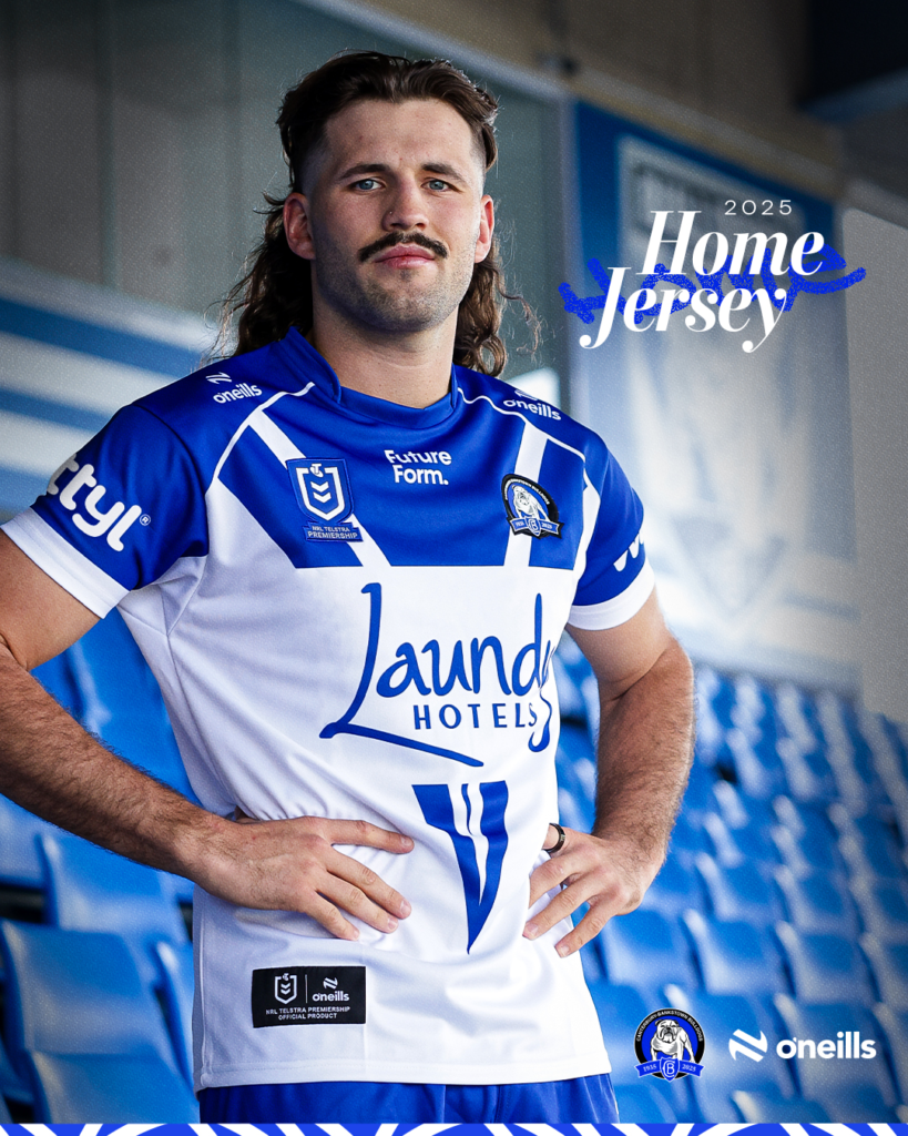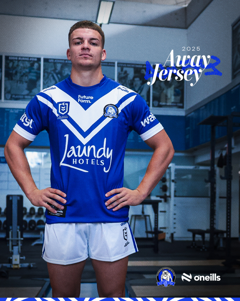 Celebrating their 90th anniversary, Canterbury-Bankstown have introduced a popular new logo (which is based on their ’80s/’90s design). The wonderful 2004 heritage jersey is now their 2025 home jerseys (minus the collar and a slight change on the shoulders), and the majority blue design is their away jersey.