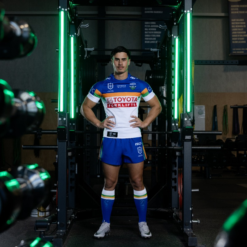 Plenty of changes for the Raiders in 2025, and they’ve been mostly well-received by fans (unlike the controversial logo change). The home jersey has been updated with the traditional white/blue/gold ACT stripes added across the chest (though the Toyota logo obscures most of it). And the white collar and blue cuffs are an interesting choice.