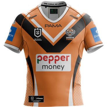 Some changes to the Tigers’ home and away jerseys: with a majority black Western Suburbs one and a majority gold Balmain one. The jerseys are quite busy, and the side panels and stripes seems to be a callback to the 2005 premiership design.