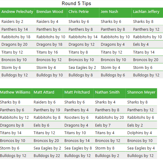 Check out who our writers think will win in round 5 of the 2025 NRL season.