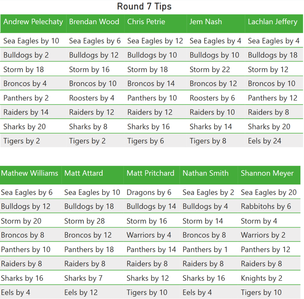 Check out who our writers think will win in round 7 of the 2025 NRL season.