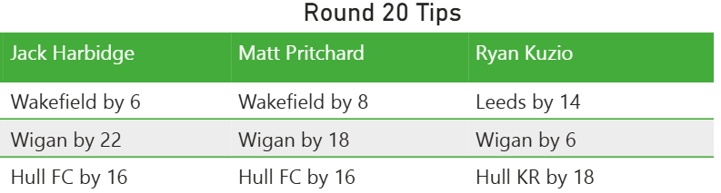 Expert Super League Round 20 (week 1) writer predictions. Submit your tips and beat the leaderboard at Rugby League Zone. Check how you rank vs RLZ writers in our tipping comp.