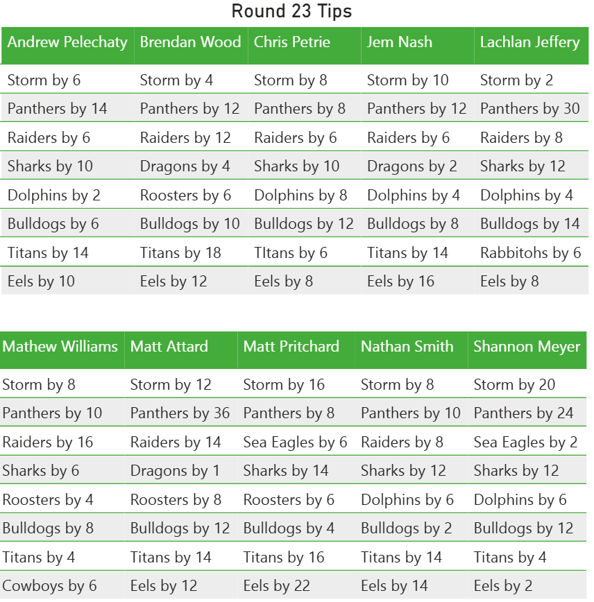 Think you can top our experts? Tip here: https://rugbyleaguezone.com/poll/round-23-nrl-tips/